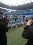 From there it was goodbye to the warmth of the Mancunian to the cold, rainy pitch side for the squad photo before the team took a training session for the girls teams at the Regional Athletics Stadium. As a Manchester United fan I couldn’t help but feel a small tingle of jealousy as I thought about the effort City had put in to their launch and the depressing fact United seem no longer interested in the women’s game.