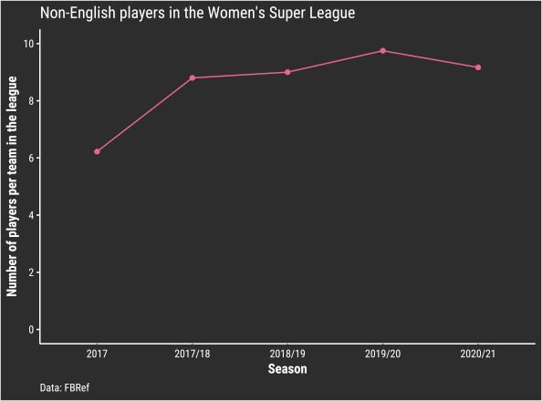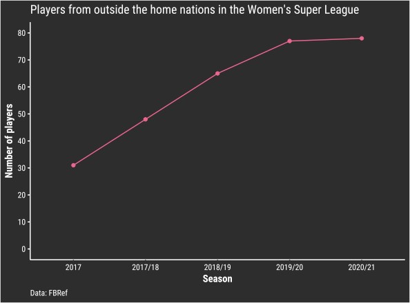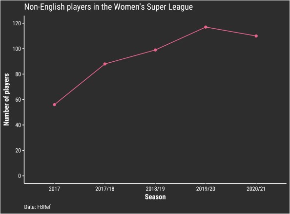 Looking at data from the past five seasons of the WSL, the number of non-English players in the league has certainly climbed.