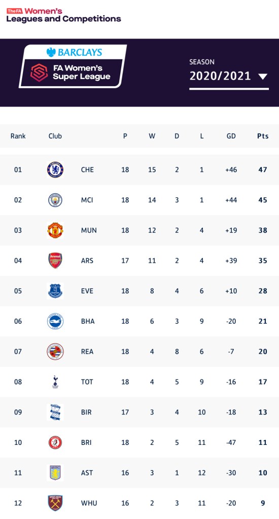 Birmingham City and Bristol City played out a 1-1 draw to ensure that the relegation battle in the Women’s Super League remains wide open. The point saw Bristol City move up to tenth, albeit having played two games more than Aston Villa who are below them in eleventh.