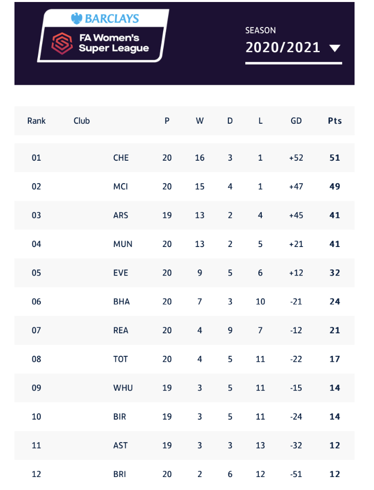 Chelsea were able to hold on despite an onslaught of City pressure for a 2-2 draw, which leaves them two points ahead in the table with two games to go. Barring an incredible upset against either Tottenham or Reading, Chelsea will be back-to-back WSL title winners.