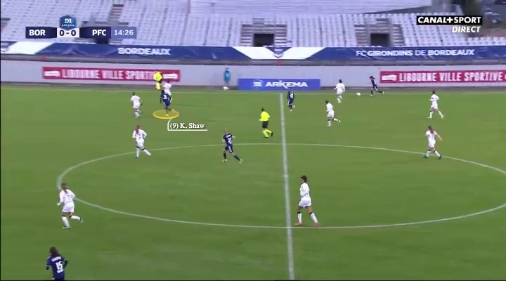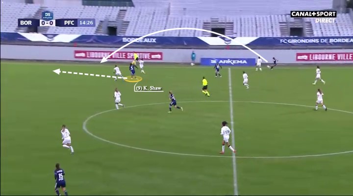 These elements of Shaw’s game could be used by Gareth Taylor to allow her to play with White. Chloe Kelly’s injury means there is a free starting position on the right hand side, but when Shaw has played with other strikers it has tended to be in a 4-4-2 or 4-2-3-1 with the second striker as a number 10. Bordeaux did try her in the right-hand side of a 4-3-3 against Lyon towards the end of last season but she struggled to make an impact from there. Meanwhile, Manchester City have also been linked to Hayley Raso who would be a much more natural fit for that right-hand side space.