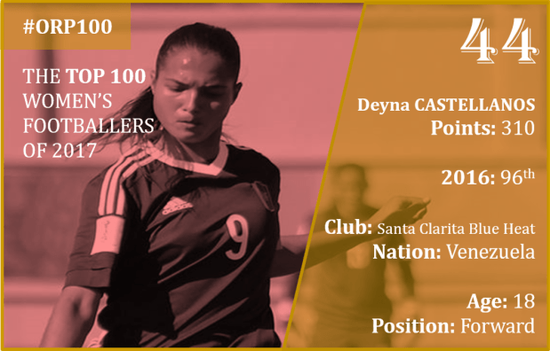 Off the back of a 2016 Under 17 World Cup which saw Deyna Castellanos score five goals and be nominated as one of the top three players at the tournament, a lot of pressure was put on the 18-year-old in 2017.