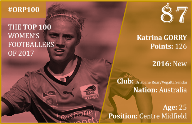 Either side of a year playing for Vegalta Sendai in Japan, Katrina Gorry started and ended her season with Brisbane Roar in Australia’s W-League.