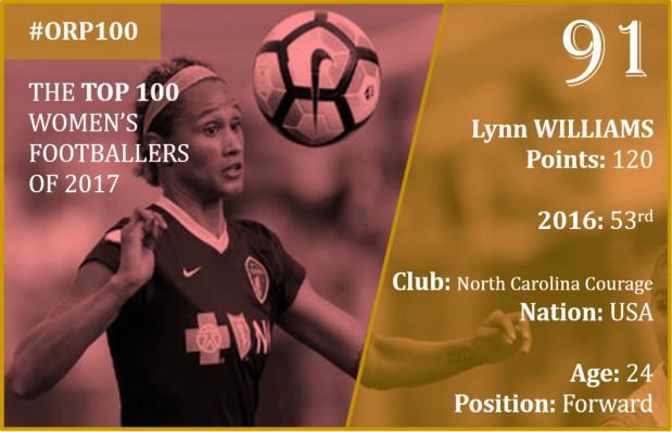 Whilst Lynn Williams couldn’t quite match her tally of 11 goals and 5 assists in 2016, she went incredible close as North Carolina Courage won the NWSL Shield in 2017.