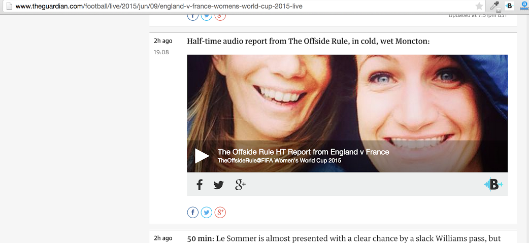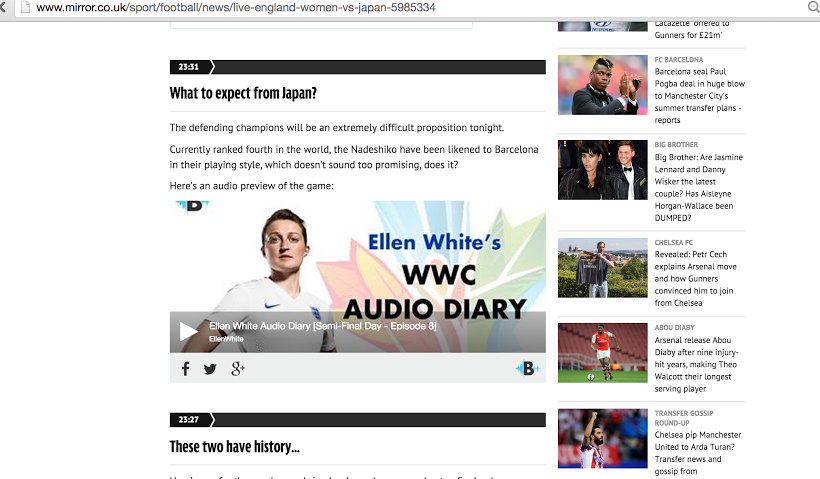 During the course of the 2015 Women’s World Cup, Kait and Lynsey worked in partnership with Audioboom to gather unique stories and interviews with England players and staff, as well as audio from the games themselves.