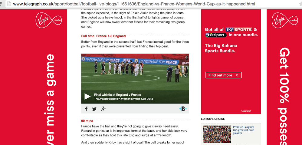 The Telegraph (2015): In September, The Offside Rule was given a rave review in The Telegraph, particularly praising the uniqueness of three female presenters.