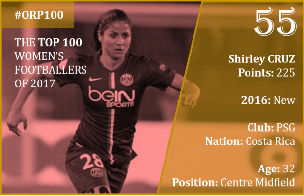 The heartbeat of the midfield for both Ligue 1 side PSG and her national team Costa Rica, Shirley Cruz had another excellent season.