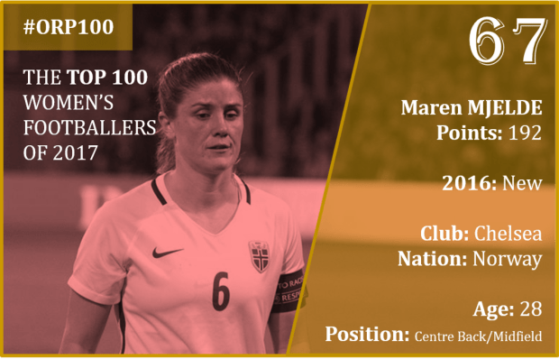 Popping up with important goals at important times, Mjelde is already repaying the faith Hayes has shown in her, but it was a disappointing year on the international stage for the Norway captain.
