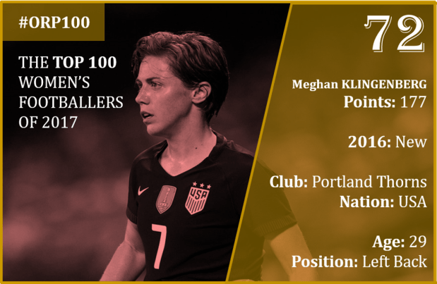 Well known as one of the best full backs in world football, Klingenberg had one of her best seasons yet in NWSL after settling with down with the Thorns after short spells abroad and some time with Houston Dash.