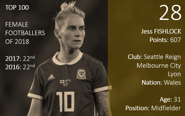 The Wales captain ranks inside our top 30 for the third consecutive year and it is a testament to her consistency that she is rated so highly around the world. Fishlock started the year by once again helping Melbourne City win the W-League, scoring goals in both the semi-final and final, before returning to the NWSL for another solid season with Seattle. A play-off semi-final defeat meant no title though and Fishlock admitted Wales losing out on a World Cup place “took something from her”, but her year ended on a positive with a move to European champions Lyon, where she scored on her home debut against Montpellier.