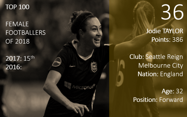 Taylor’s position on this list has fallen after she failed to build on an impressive 2017 with England. She won the European Championship golden boot last year but has struggled for regular games under the new head coach, Phil Neville, even if she did score in his first game – against France – back in March. At club level, things were much more successful after returning to America with Seattle Reign. Taylor warmed up by scoring in the W-League final for Melbourne City and nine NWSL goals followed, including a strike on her debut against Washington Spirit.