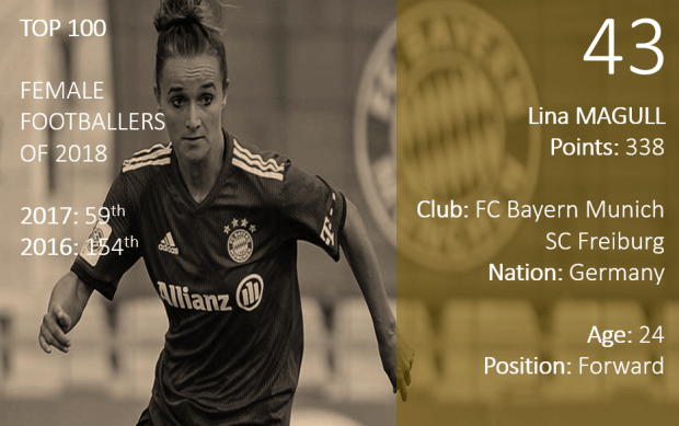 “Lina has shown great performances in the past year both for SC Freiburg, and then for FC Bayern Munich. With 9 league goals so far, she has demonstrated not only her technical and creative abilities as an attacking midfielder, but also her great qualities in front of the goal.”
