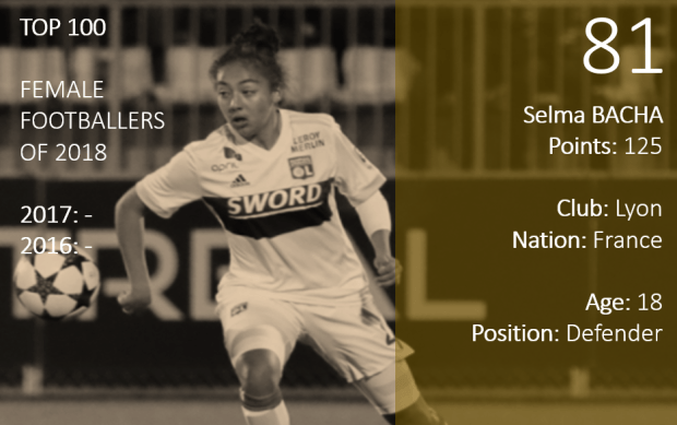 At 18, Bacha’s name should become far more familiar in years to come. She is the youngest player to break into this list after making a greater impact than any teenager could hope for at Europe’s top level. The young Lyon left-back has regularly chipped in with assists for her teammates and even found the net in a recent Champions League tie against Ajax. Bacha played every one of France’s games at the Under-20 World Cup and it seems only a matter of time before she receives a senior call-up. Time will tell whether it arrives in time for next summer’s showpiece tournament.