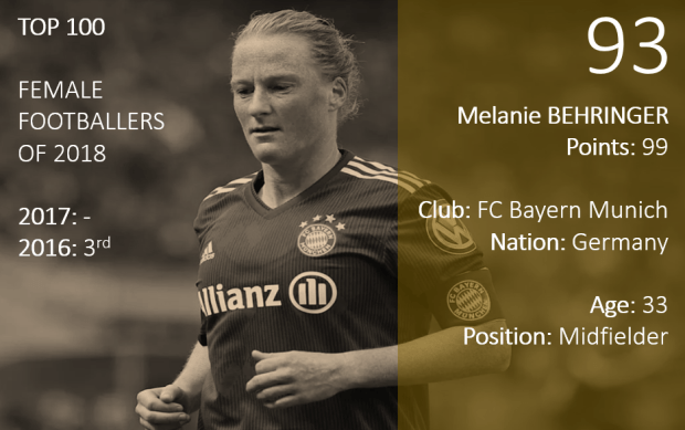 The classy German, listed in our top three just two years ago before injury wiped her out in 2017, sneaks back in after a decent year. The 33-year-old was a reliable leader as Bayern tried to chase down a quality Wolfsburg side in both league and cup and her performances showed glimpses of the qualities she will always be remembered for. Sadly another knee injury curtailed her year early but there remains hope that she will return fit and firing next year.