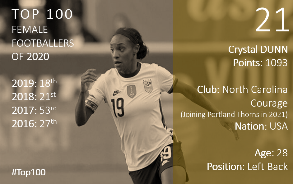 While some players who rank highly on this list have it all, Crystal Dunn literally does, one of a few players who can jump between defensive and attacking roles for club and country. Dunn’s importance and quality to North Carolina Courage was evident as ever during the Challenge Cup, her desire and drive to get forward with her natural attacking instincts making her a key outlet. For the USA, Dunn has continued to be used in a left-back role under Vlatko Andonovski and has been part of a team that has conceded just one goal all year. One of the best at taking on her opponent, a new challenge awaits Dunn in 2021 after being traded to Portland Thorns.