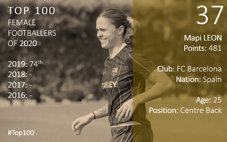Mapi León is now undoubtedly one of the top centre-backs anywhere in the world. Whether it’s for Barcelona or Spain, she is a rock at the back and rarely struggles to put in a top performance. Like many of the top defenders these days, she’s also incredibly comfortable playing out from the back, a staple of both the Barcelona and Spanish way of playing. Mapi came in well within the top five centre-backs anywhere in the world this year for passes completed, with nearly 2,000, and an incredibly accuracy percentage of 94%. She would deserve a major European or worldwide trophy with either club or country and at just 25 it’s arguable she’s not even at the peak of her powers just yet.