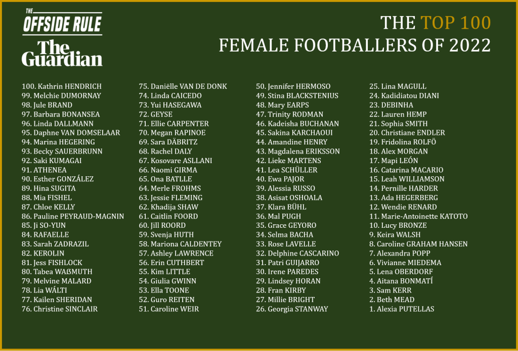 The voting period for the Top 100 Female Footballers of 2022 was 1st November 2021 – 31st October 2022.