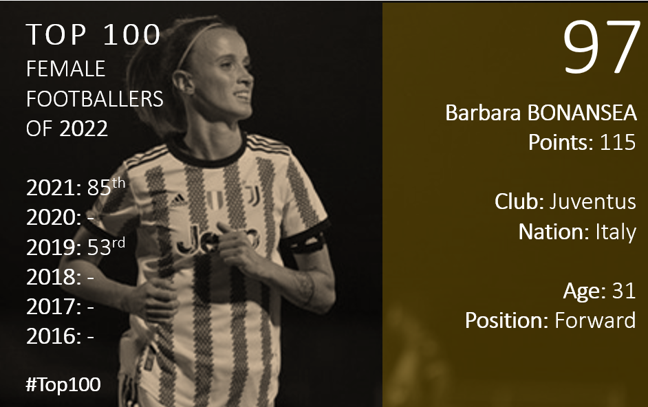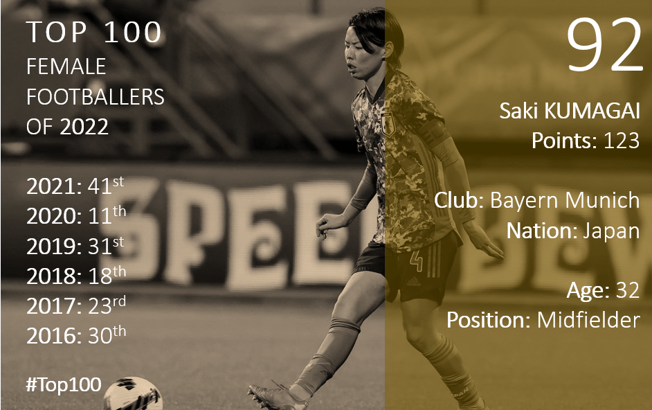 The voting period for the Top 100 Female Footballers of 2022 was 1st November 2021 – 31st October 2022.