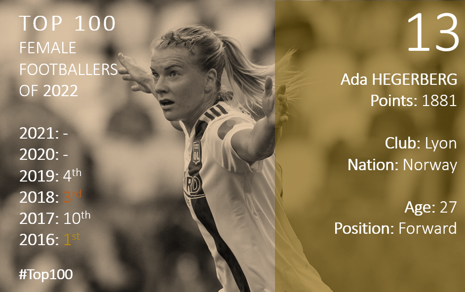 The voting period for the Top 100 Female Footballers of 2022 was 1st November 2021 – 31st October 2022
