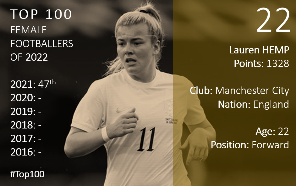 The voting period for the Top 100 Female Footballers of 2022 was 1st November 2021 – 31st October 2022