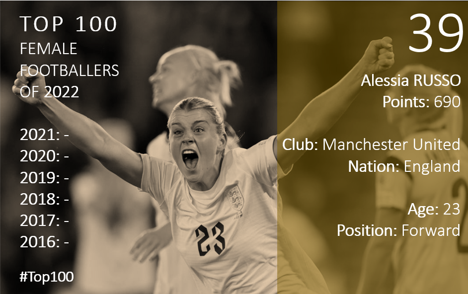 The voting period for the Top 100 Female Footballers of 2022 was 1st November 2021 – 31st October 2022