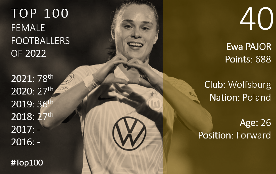 Top 100 Female Footballers of 2022: 40-31