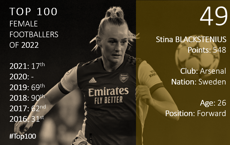 The voting period for the Top 100 Female Footballers of 2022 was 1st November 2021 – 31st October 2022