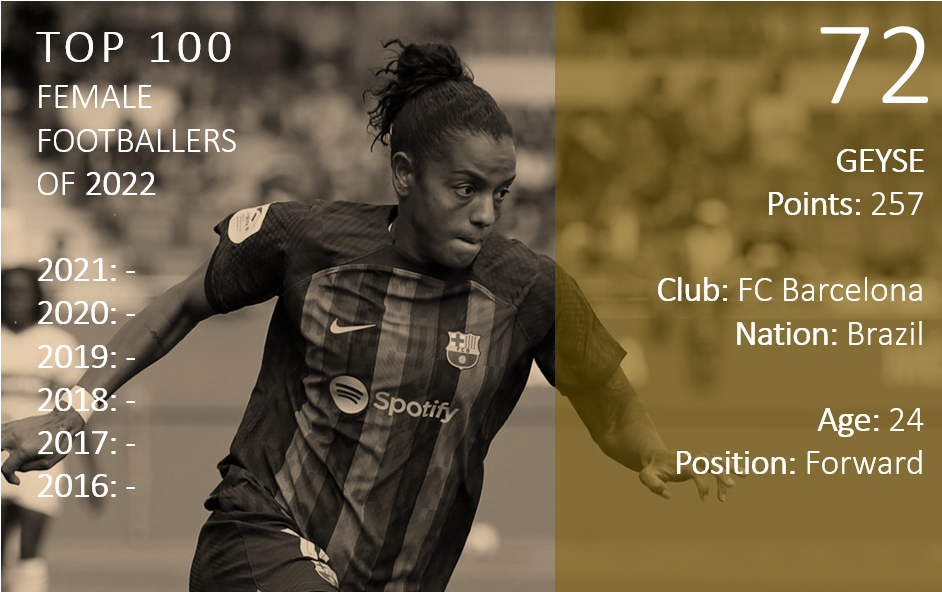 The voting period for the Top 100 Female Footballers of 2022 was 1st November 2021 – 31st October 2022.